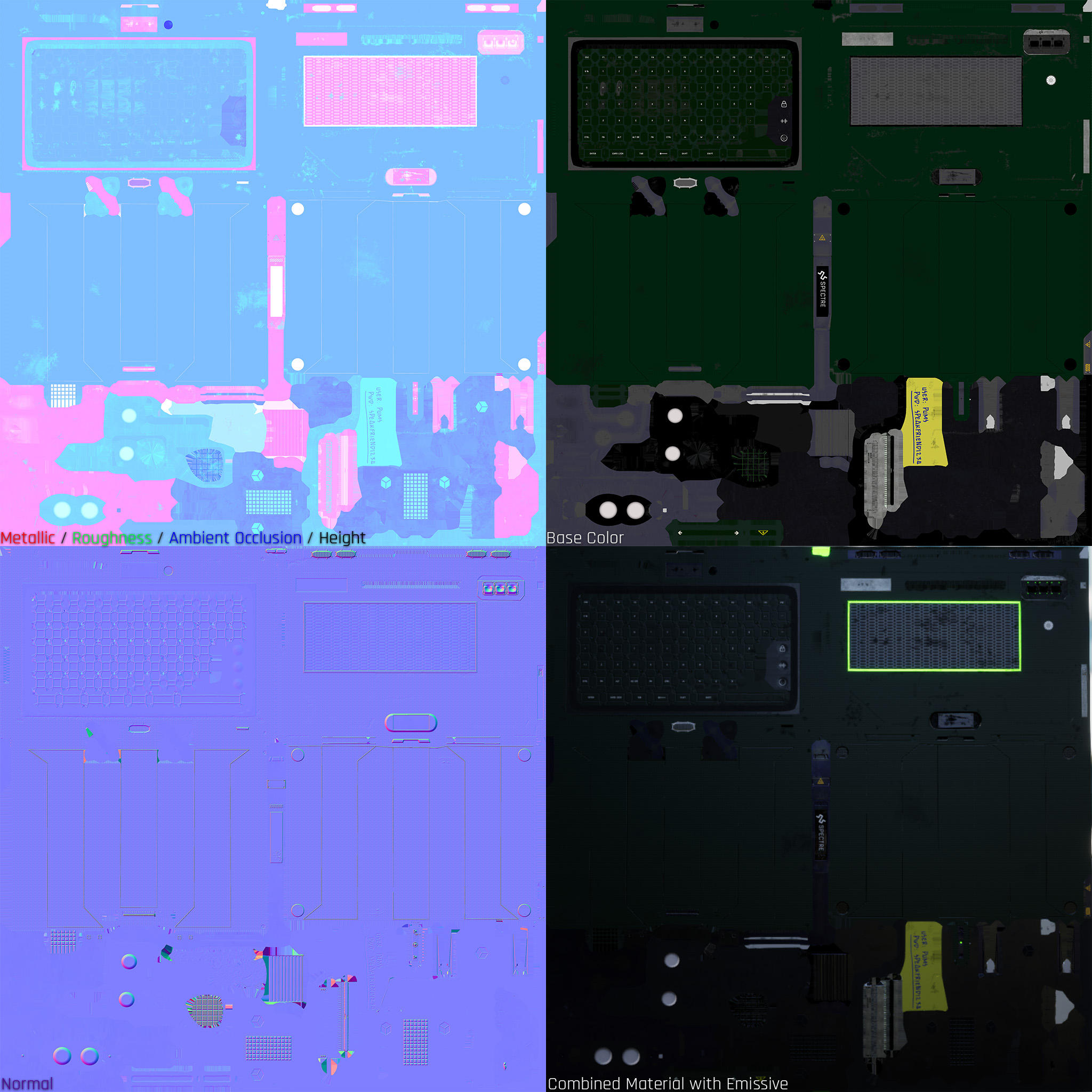 This is a personal project where I modeled and textured a futuristic laptop. I wanted it to look a bit roughed up, well used and have many moving widgets on the many screens!