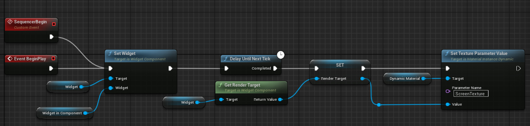 The asset is using two main materials, one for the laptop and one for the screens. The screen material is then using an UMG widget as render target to feed a texture parameter: